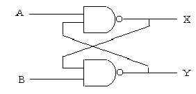 X = A + B・X , Y = B + A・Yと表され,表2.17の真理値のような値を示し,Xは,Bが0であると,XはA ̄の値を示すが,Bが1であると,A ̄が一度1になるとXは1になり,A ̄が0になってもXはそのまま1を保ち,Xは1を記憶した状態になり,再びBを0にしないかぎりXは0にもどらない.